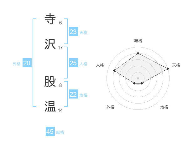 寺沢 股温さんの総格は45画の4点!
