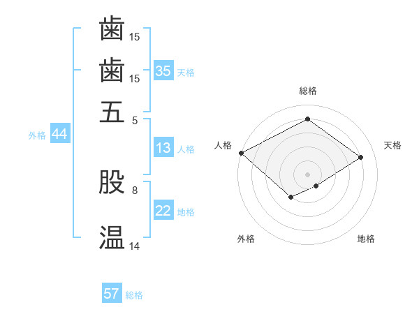 歯歯五 股温さんを姓名の画数から五運を鑑定