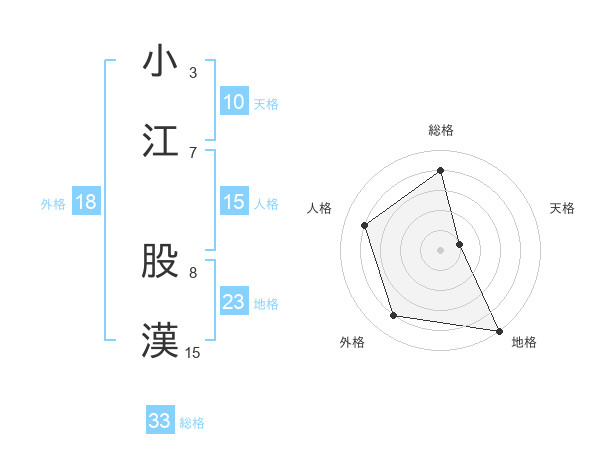 小江 股漢さんの総格は33画の4点!