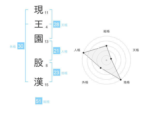 現王園 股漢さんの総格は51画の3点!