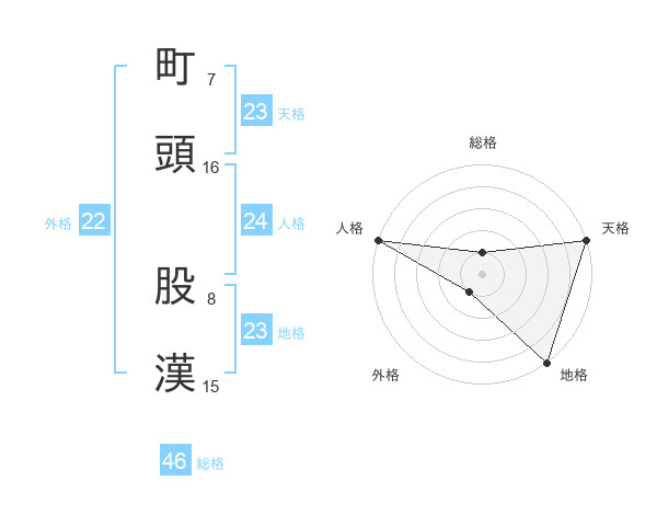 町頭 股漢さんの天格は23画の5点!