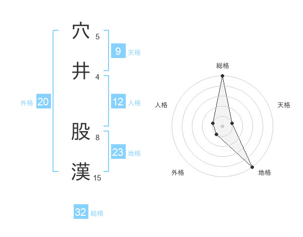 穴井 股漢さんの総格は32画の5点!