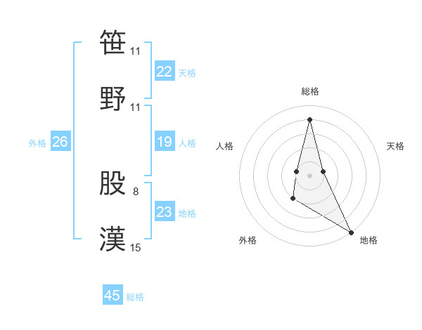 笹野 股漢さんの総格は45画の4点!