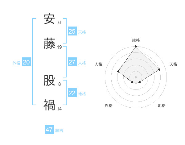 安藤 股禍さんを姓名の画数から五運を鑑定