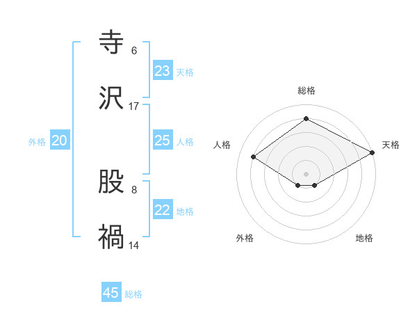 寺沢 股禍さんの天格は23画の5点!
