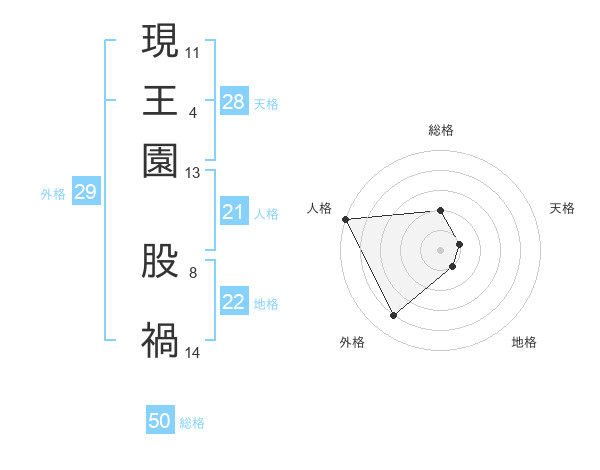 現王園 股禍さんを姓名の画数から五運を鑑定