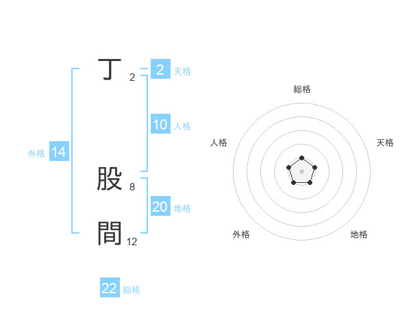 丁 股間さんの総格は22画の1点!