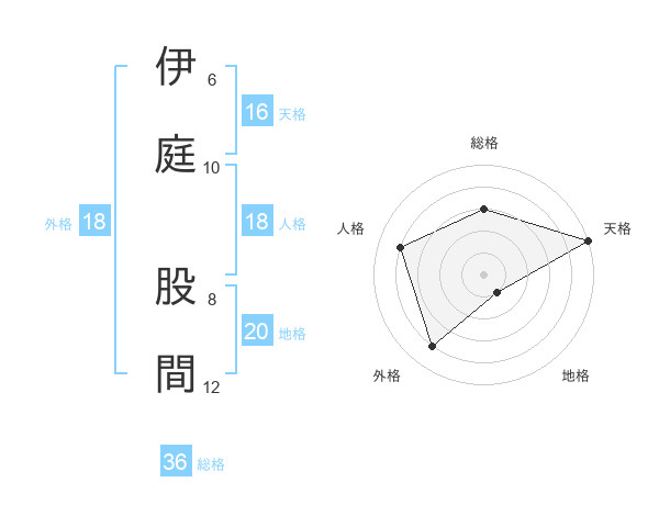 伊庭 股間さんの天格は16画の5点!