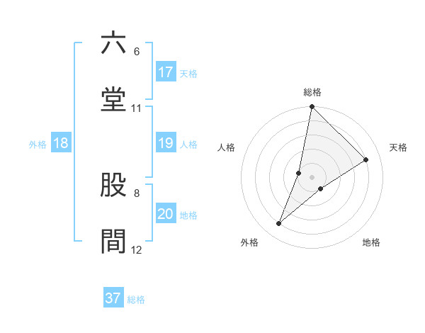 六堂 股間さんの総格は37画の5点!
