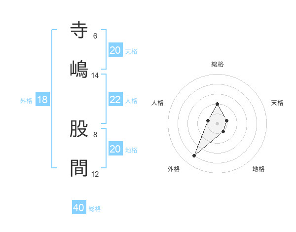 寺嶋 股間さんを姓名の画数から五運を鑑定
