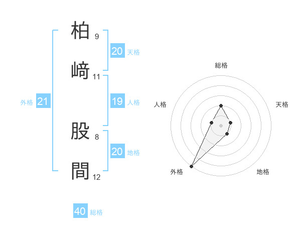 柏﨑 股間さんの総格は40画の2点!