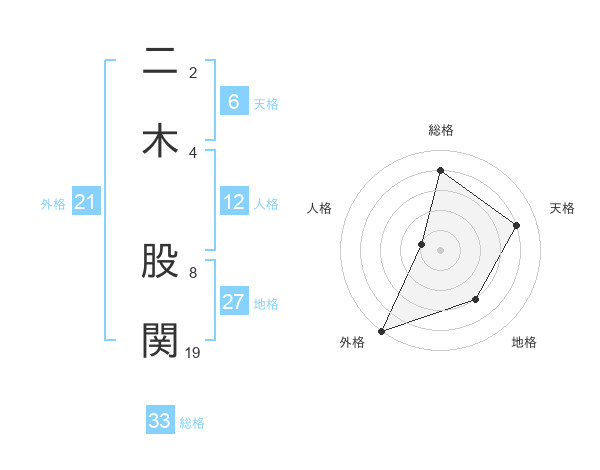 二木 股関さんの総格は33画の4点!