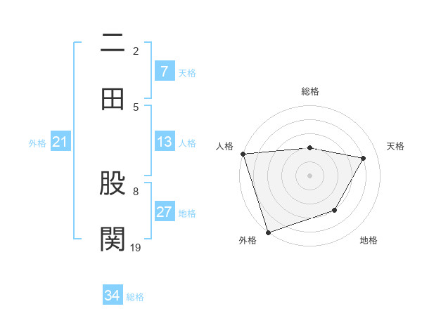 二田 股関さんの総格は34画の2点!