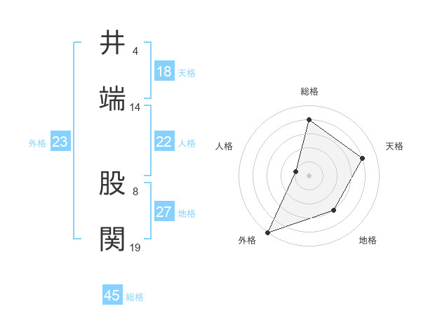 井端 股関さんの総格は45画の4点!