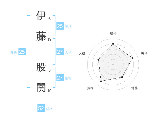 伊藤 股関さんの総格は52画の4点!