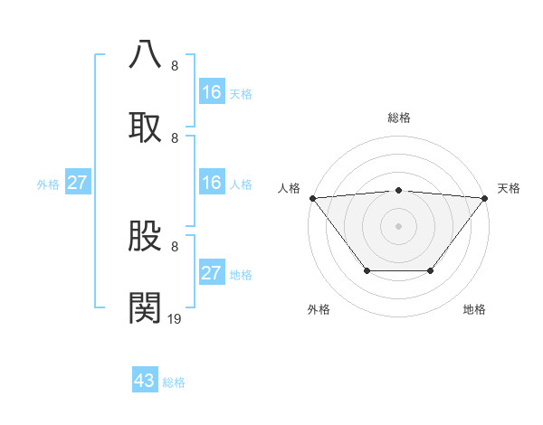 八取 股関さんの天格は16画の5点!