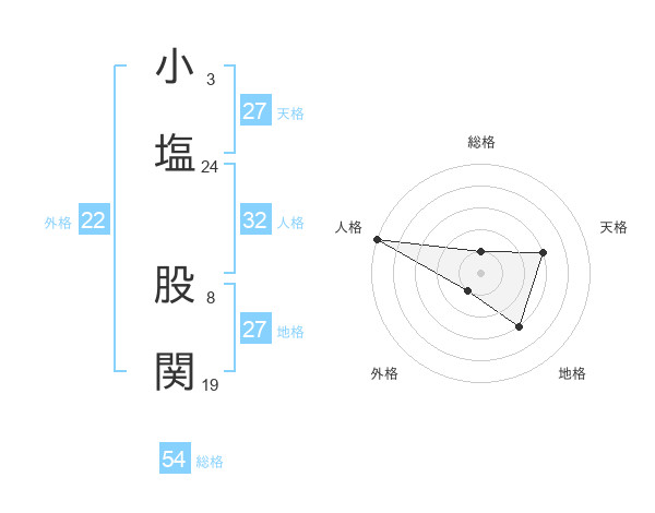 小塩 股関さんの外格は22画の1点!