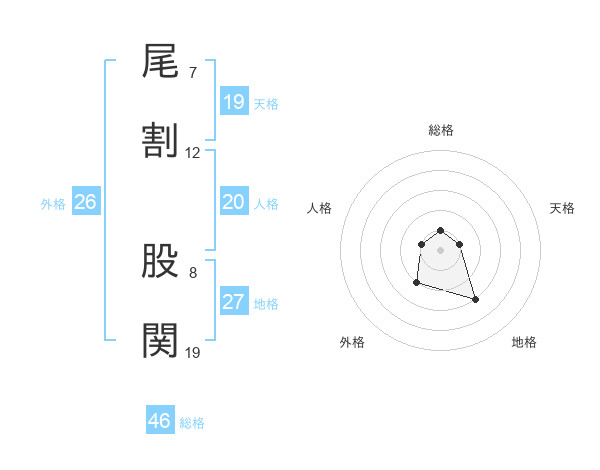 尾割 股関さんの外格は26画の2点!