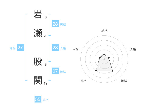 岩瀬 股関さんの総格は55画の1点!
