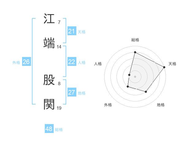江端 股関さんの天格は21画の5点!