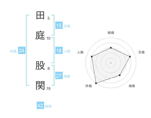 田庭 股関さんの外格は24画の5点!