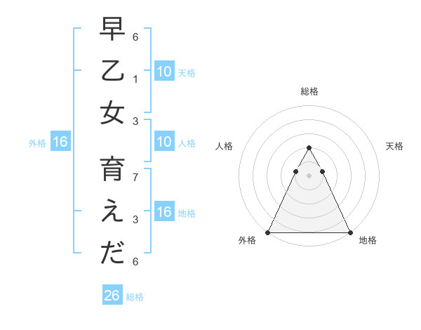 早乙女 育えださんを姓名の画数から五運を鑑定