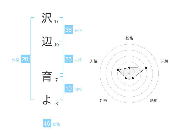 沢辺 育よさんを姓名の画数から五運を鑑定