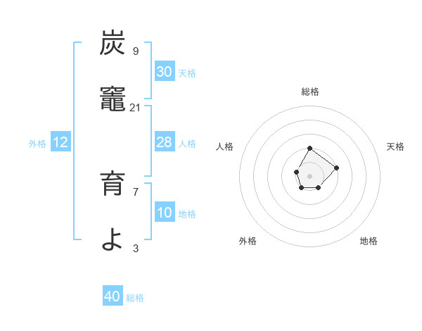 炭竈 育よさんを姓名の画数から五運を鑑定