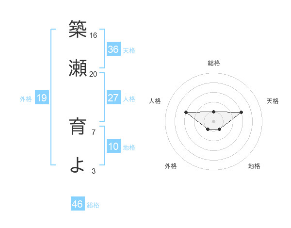 築瀬 育よさんの総格は46画の1点!