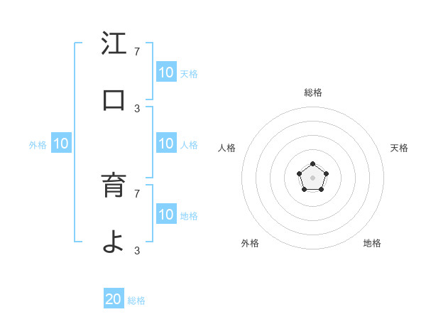 江口 育よさんの総格は20画の1点!
