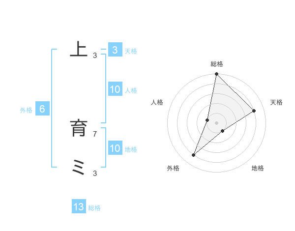 上 育ミさんの総格は13画の5点!