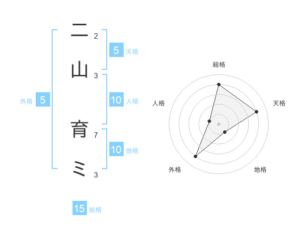二山 育ミさんの外格は5画の4点!