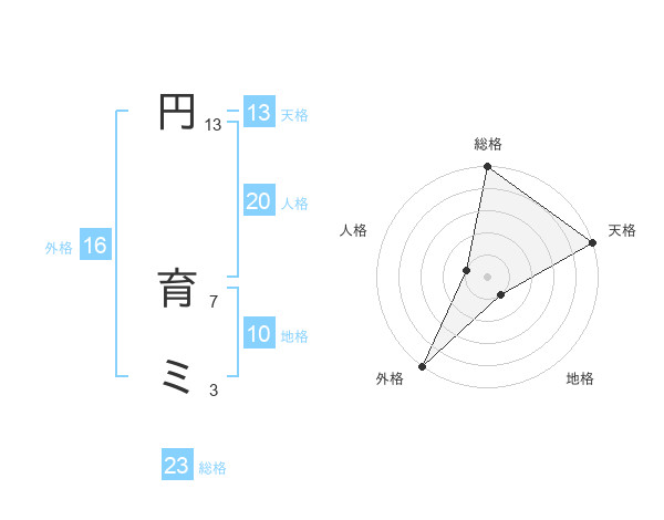 円 育ミさんの総格は23画の5点!