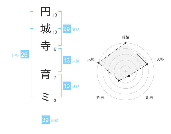 円城寺 育ミさんの総格は39画の5点!