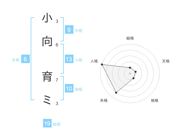 小向 育ミさんの総格は19画の1点!