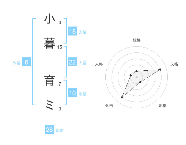 小暮 育ミさんを姓名の画数から五運を鑑定