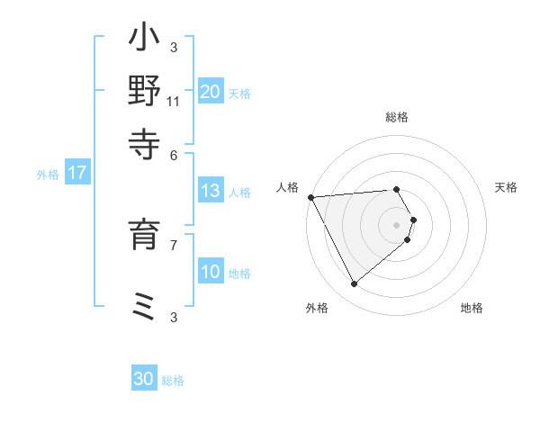 小野寺 育ミさんの天格は20画の1点!