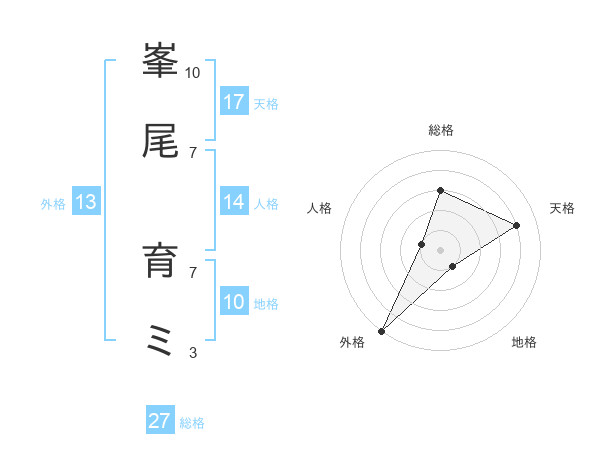 峯尾 育ミさんの総格は27画の3点!