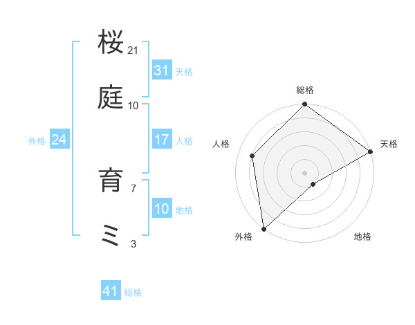 桜庭 育ミさんを姓名の画数から五運を鑑定