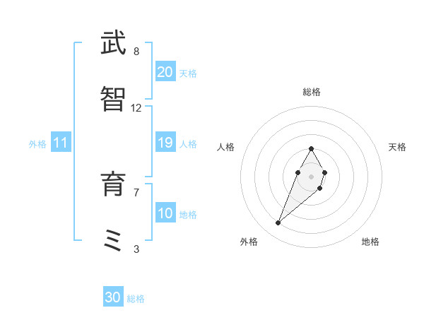 武智 育ミさんの総格は30画の2点!