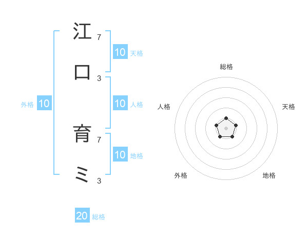 江口 育ミさんの総格は20画の1点!