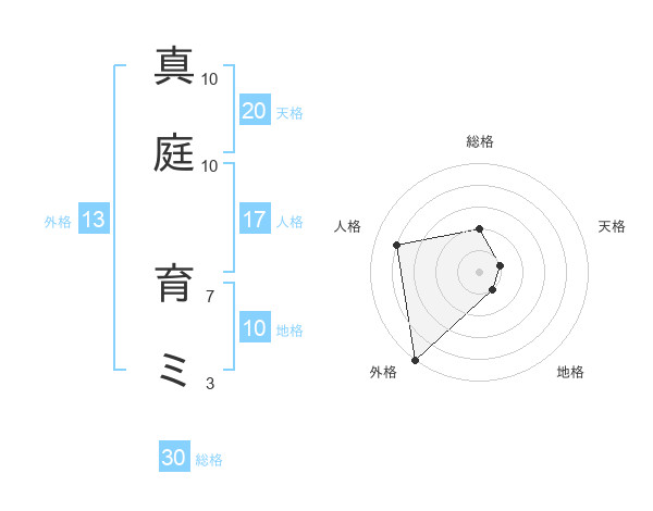 真庭 育ミさんの総格は30画の2点!