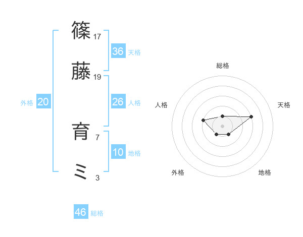 篠藤 育ミさんを姓名の画数から五運を鑑定