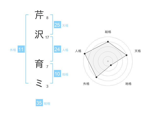 芹沢 育ミさんを姓名の画数から五運を鑑定