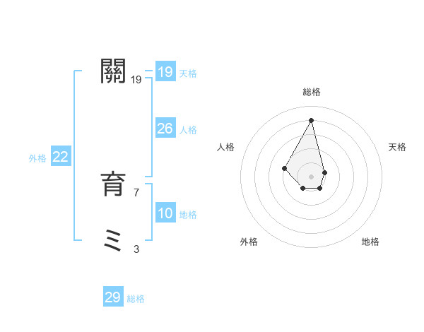 關 育ミさんの天格は19画の1点!