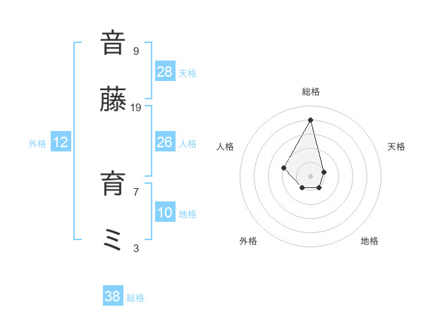 音藤 育ミさんを姓名の画数から五運を鑑定