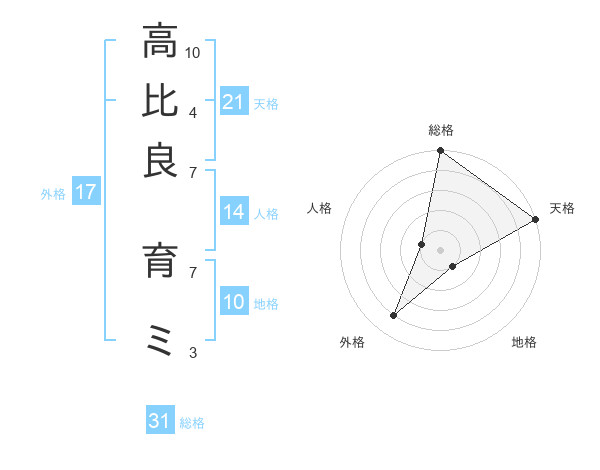 高比良 育ミさんの天格は21画の5点!