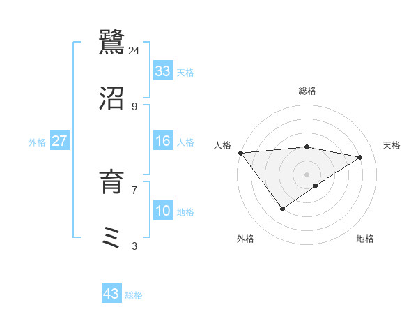 鷺沼 育ミさんの総格は43画の2点!