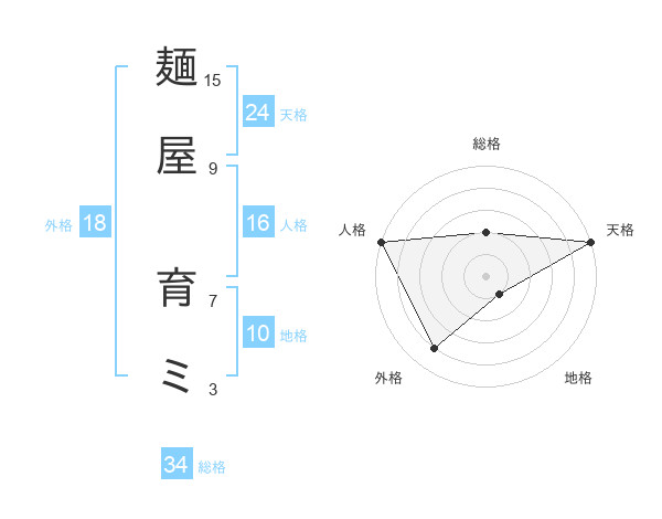 麺屋 育ミさんを姓名の画数から五運を鑑定