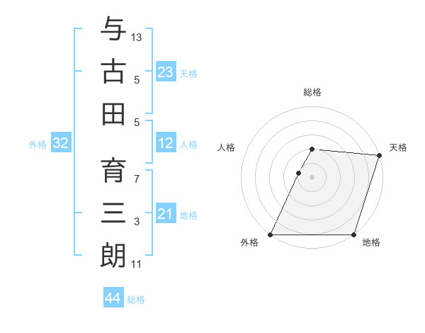 与古田 育三朗さんを姓名の画数から五運を鑑定